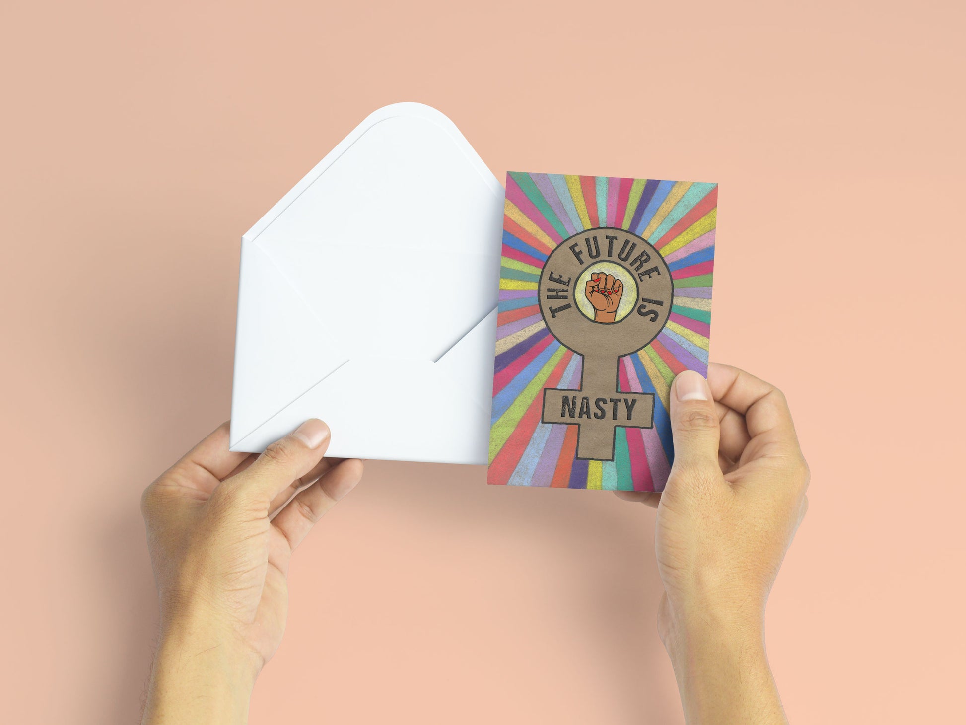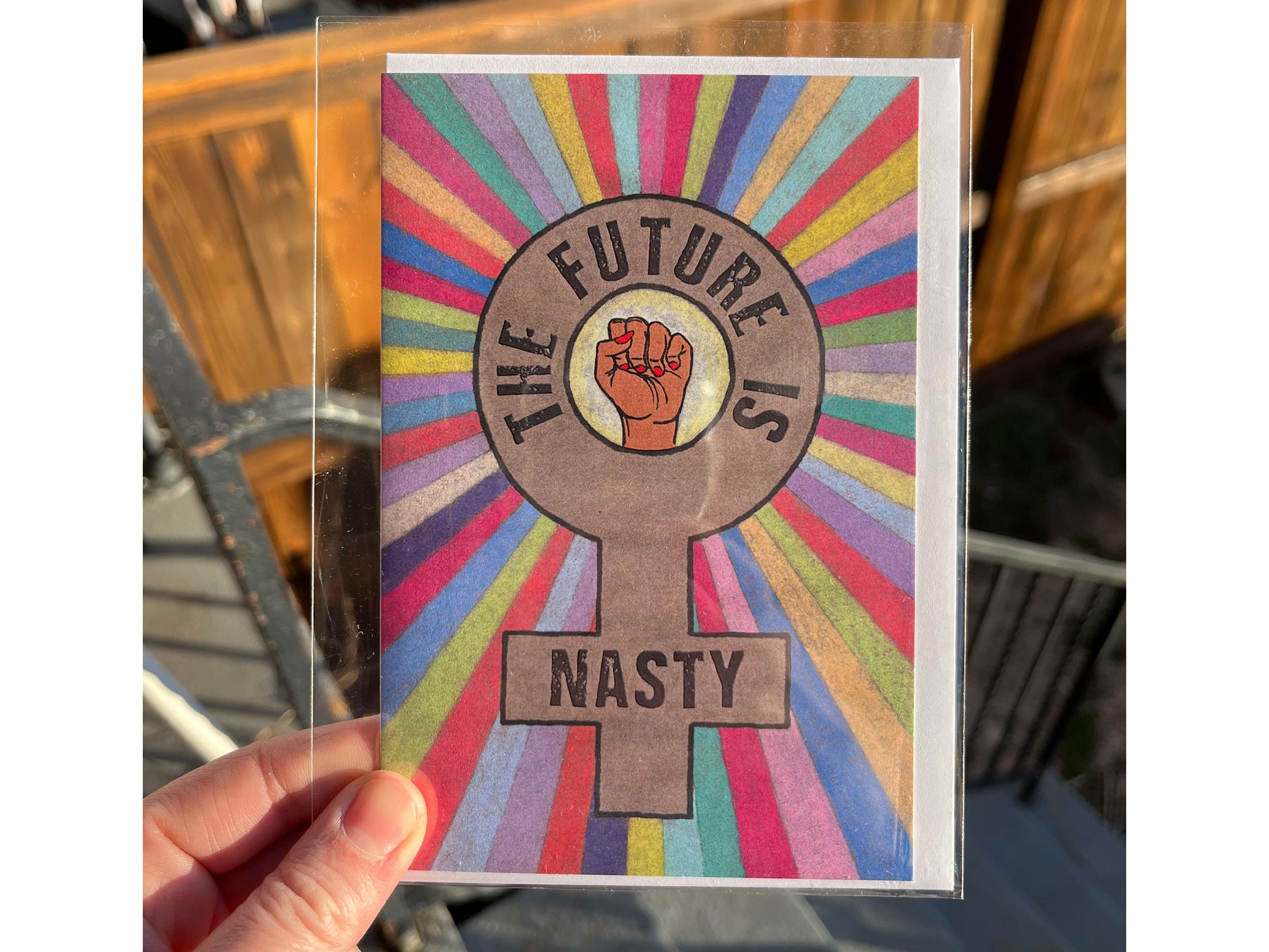 Esta tarjeta de felicitación celebra el desafío femenino ante los insultos utilizados para silenciar e intimidar.