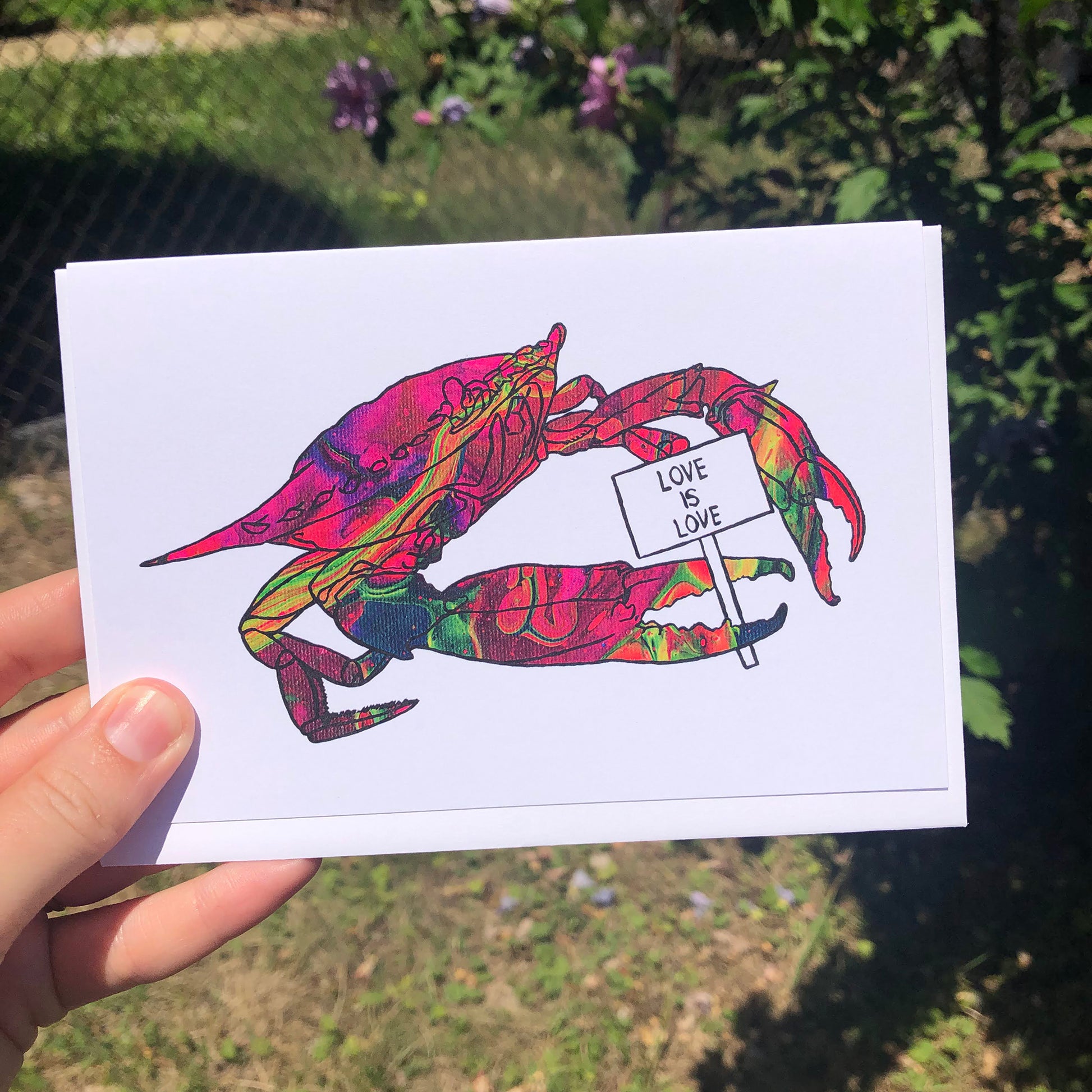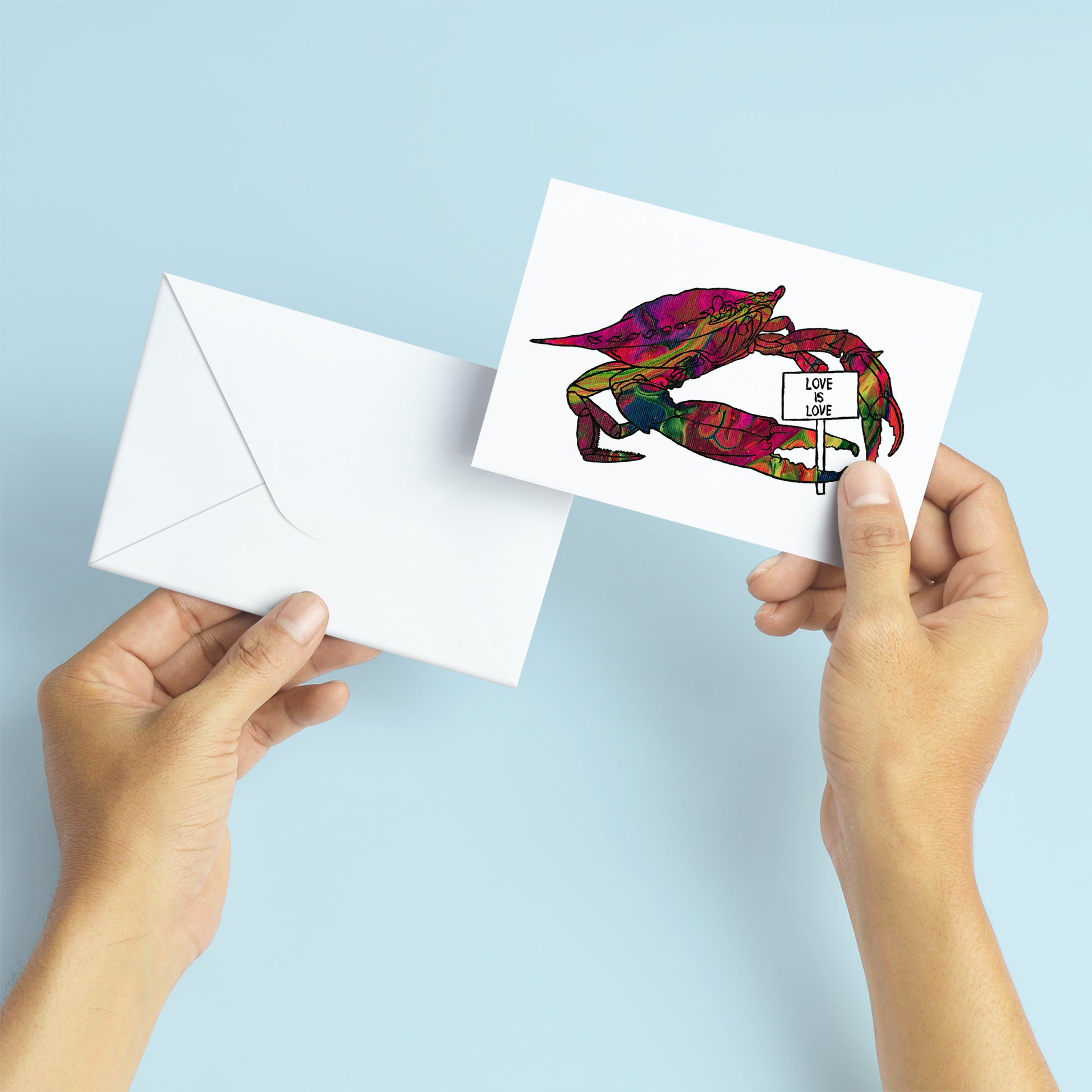 Tarjeta de felicitación en blanco de cangrejo de Chesapeake 'Love Is Love'