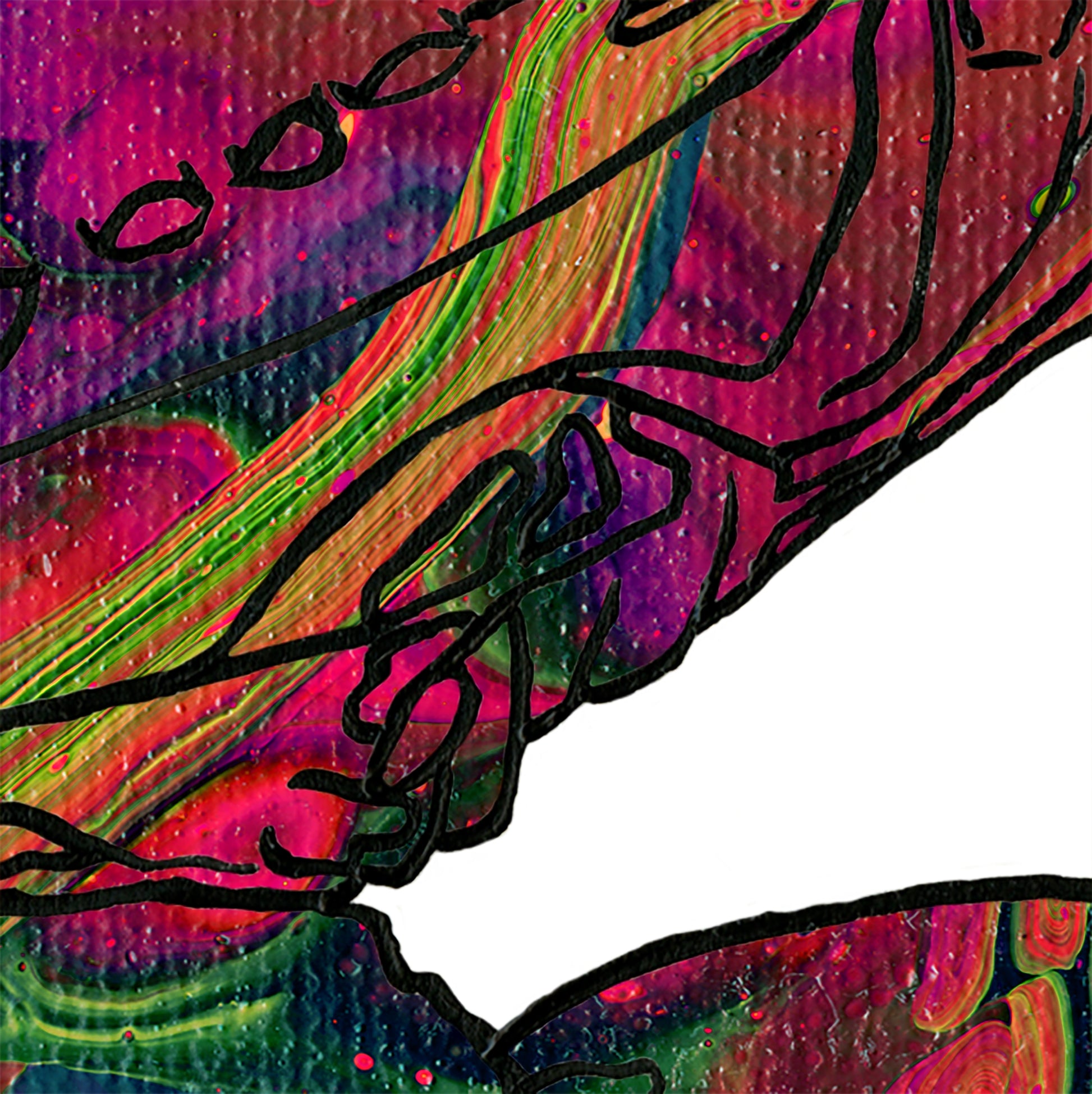 Creé esta tarjeta de felicitación 'Love Is Love' usando una técnica de vertido de pintura acrílica para lograr un efecto de arcoíris fluido. Esta es una copia de mi pintura original, que forma parte de una serie de criaturas de las profundidades marinas sosteniendo carteles de protesta que dicen "El amor es amor".
