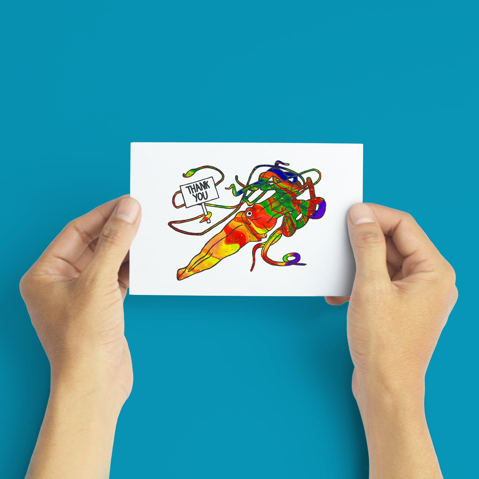 Creé esta tarjeta de felicitación 'Love Is Love' usando una técnica de vertido de pintura acrílica para lograr un efecto de arcoíris fluido. Esta es una copia de mi pintura original, que forma parte de una serie de criaturas de las profundidades marinas sosteniendo carteles de protesta que dicen "El amor es amor".