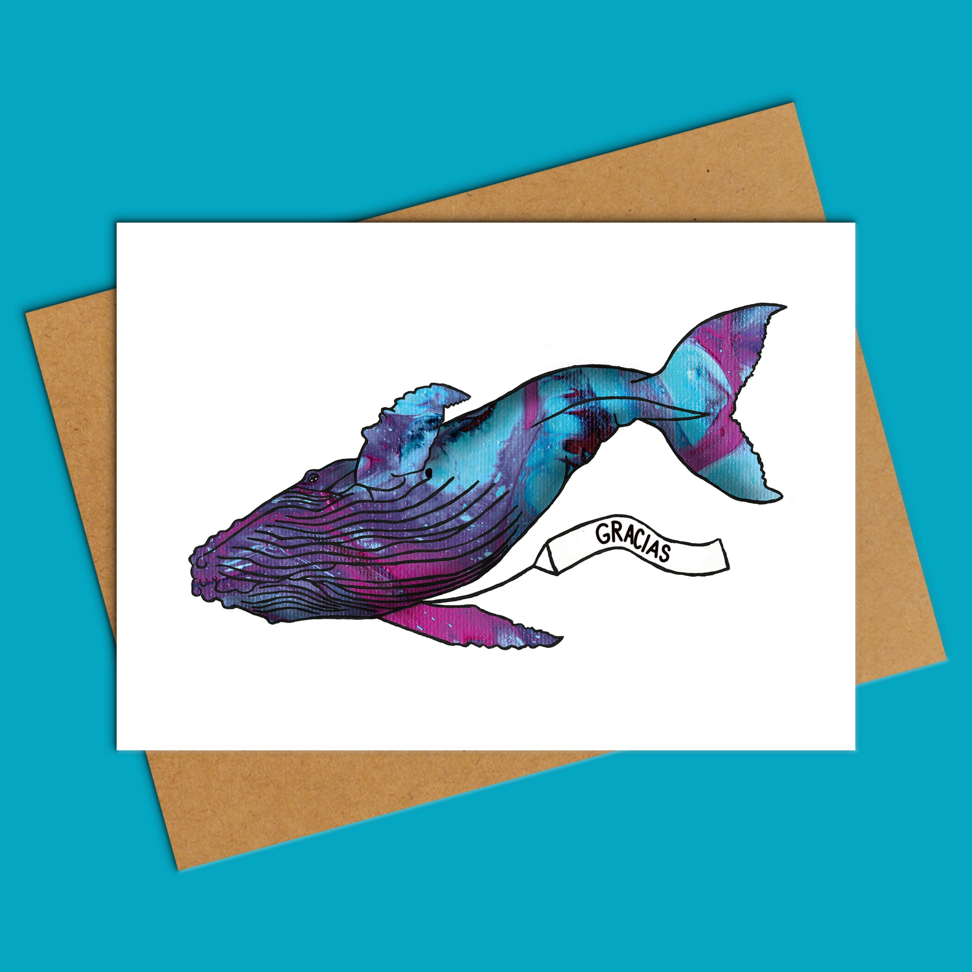 Tarjeta de felicitación en blanco con ballena azul 'Love Is Love'