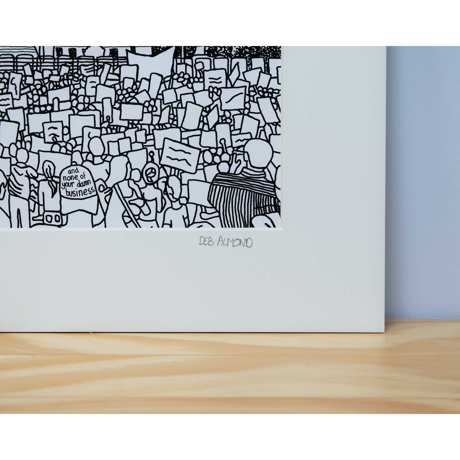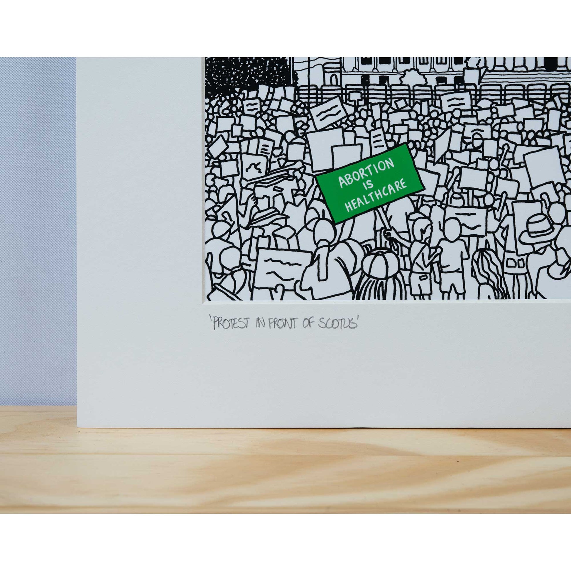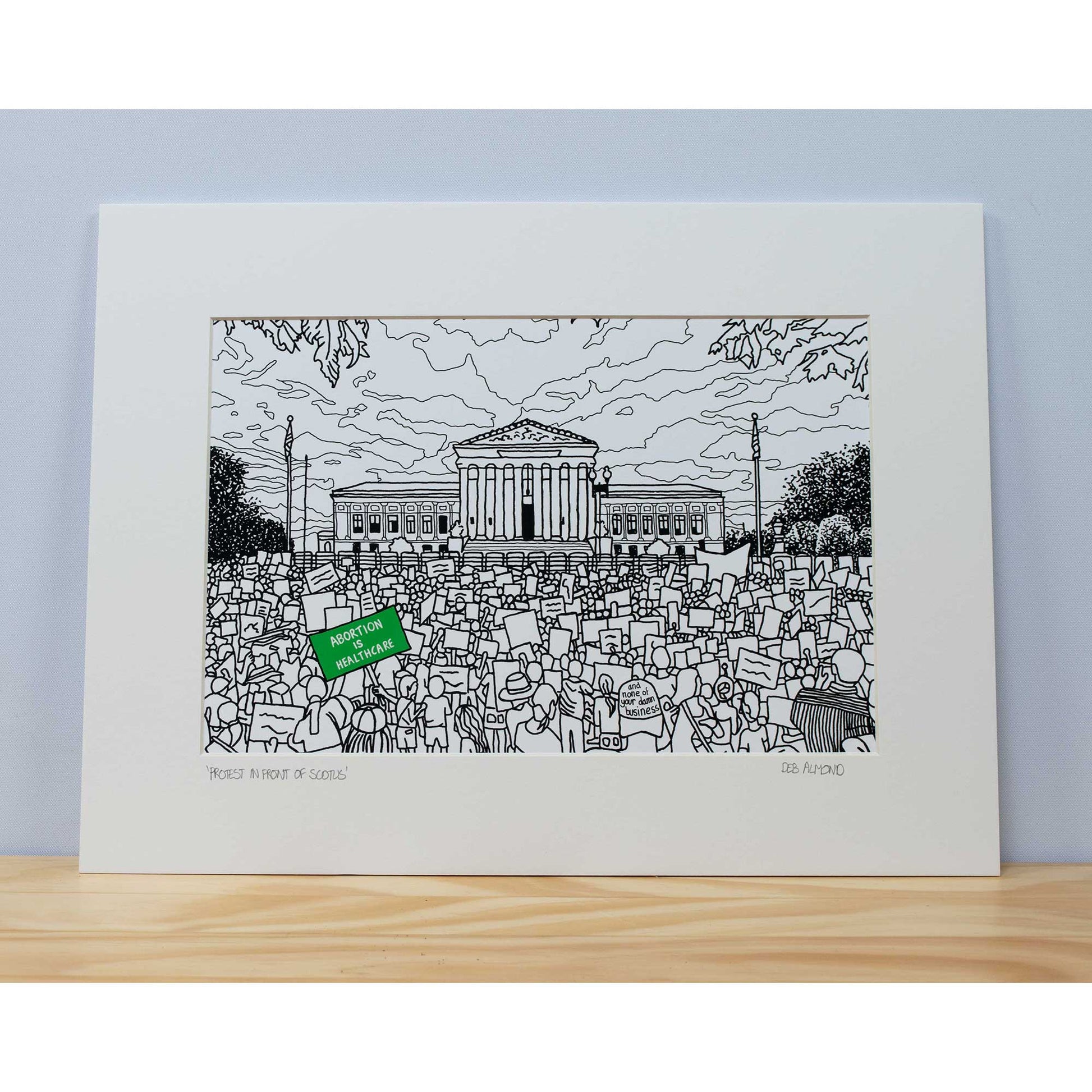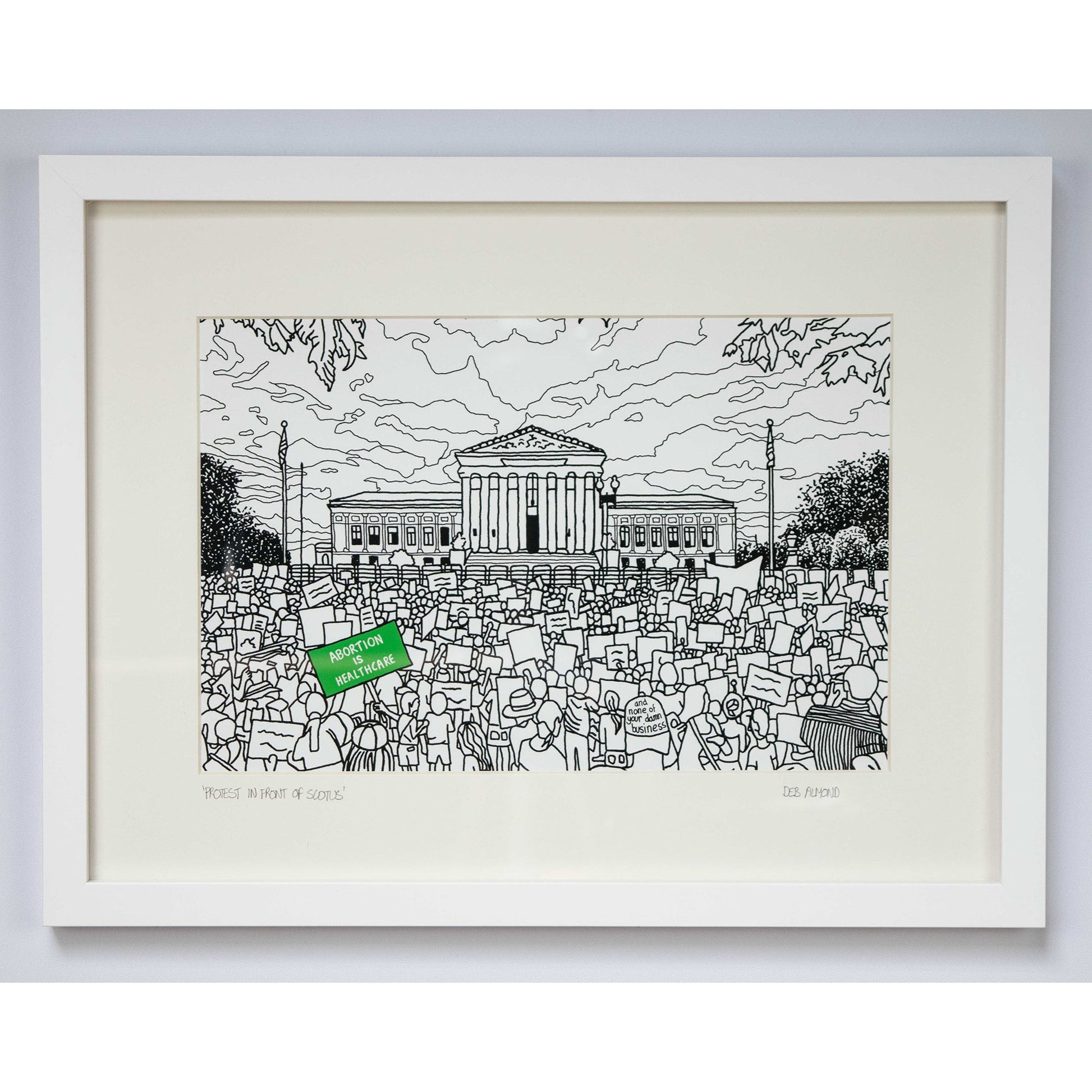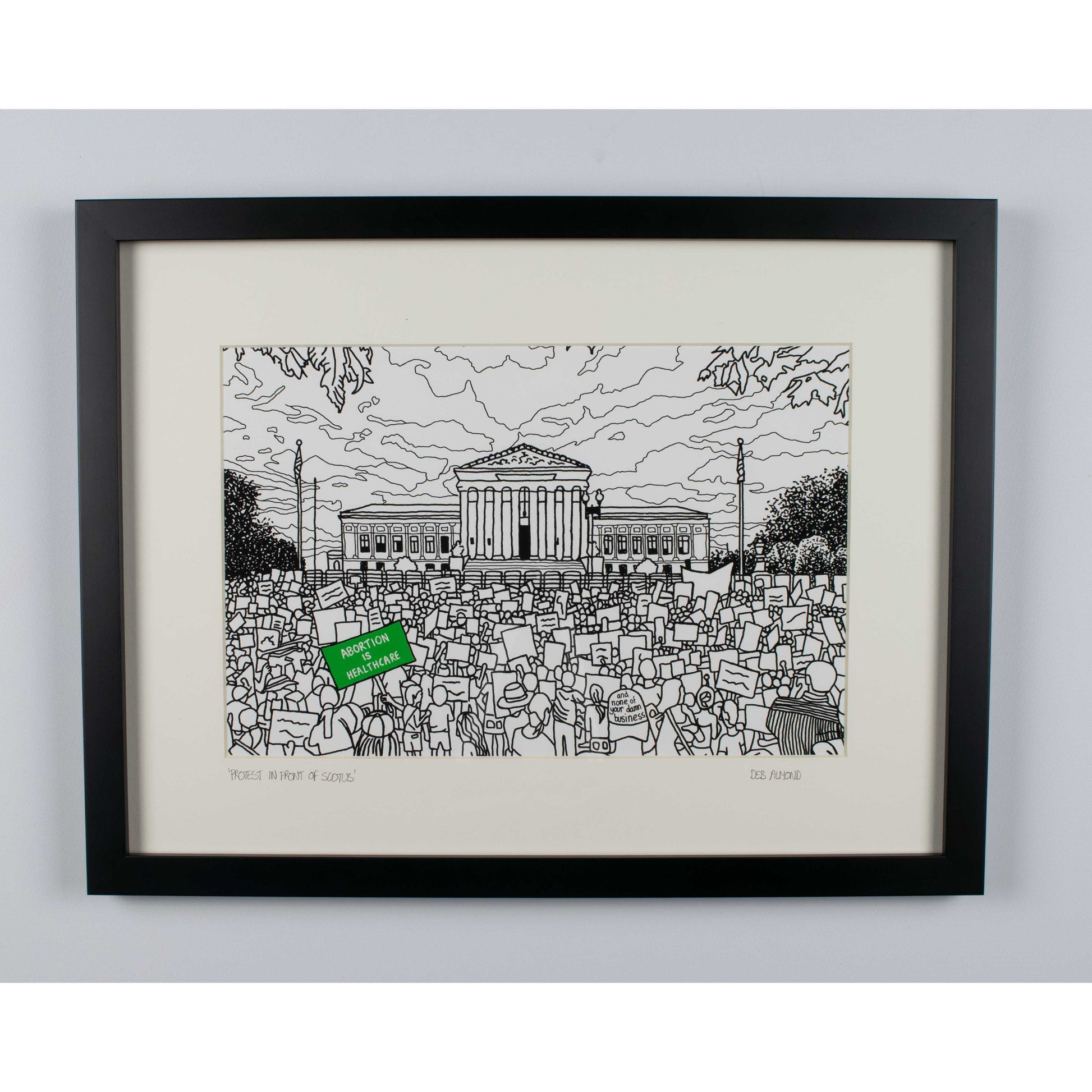I drew this pen and ink picture of hundreds of people voicing their despair in front of a fenced off SCOTUS to mark that day. The message is clear: Abortion is healthcare and it's none of your damn business.