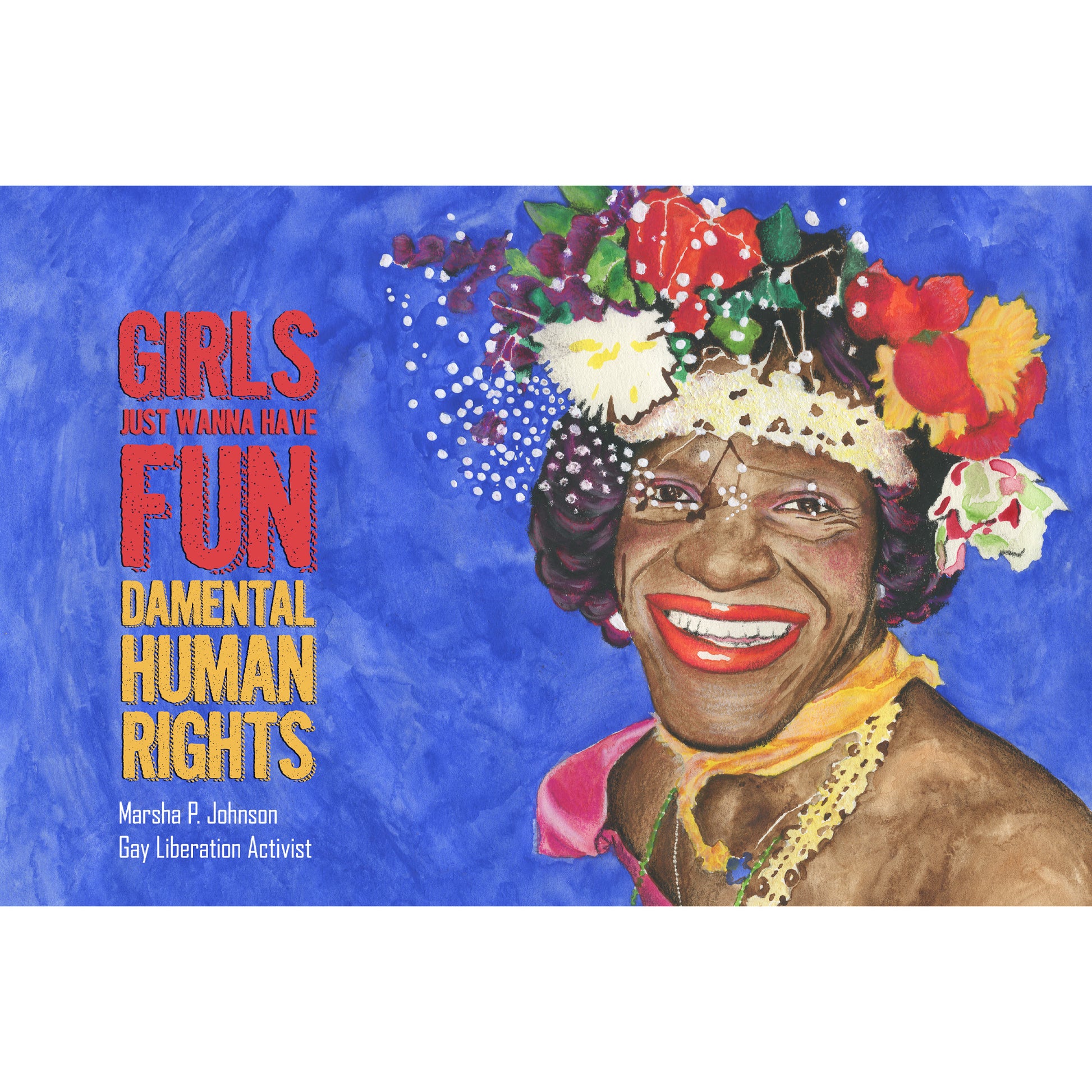 This 'Girls Just Wanna Have Fundamental Human Rights' print features American gay liberation activist, self-identified drag queen, and icon of the Stonewall uprising, Marsha P. Johnson.